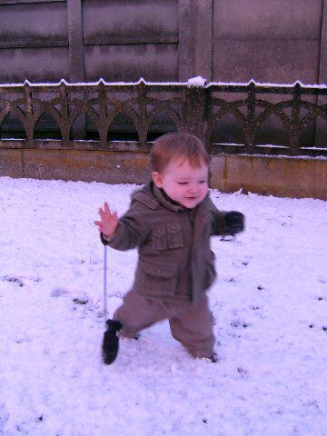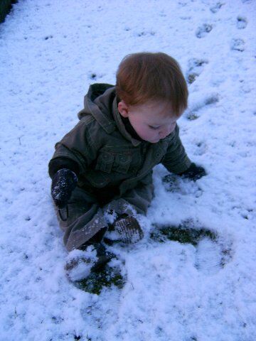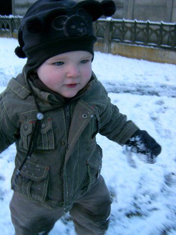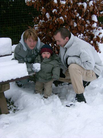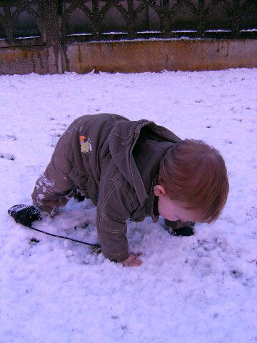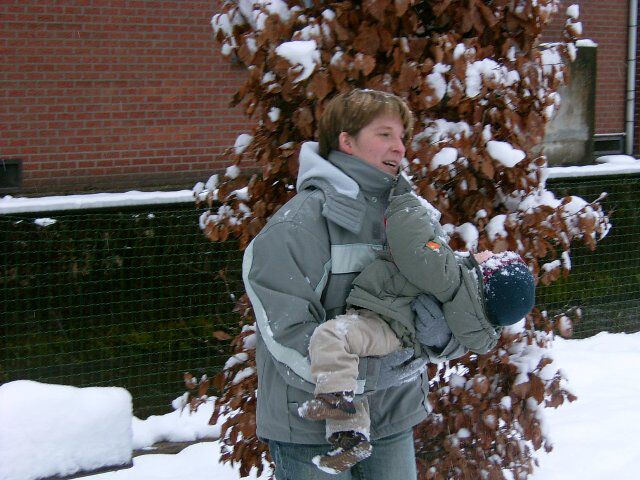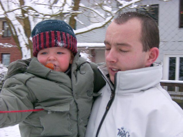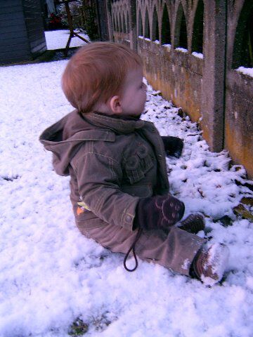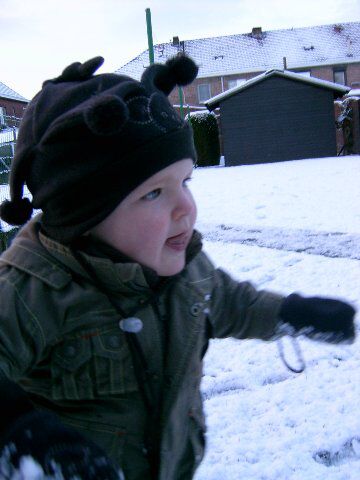 Het gebeurt hier in ons landje niet meer zo vaak, dus moesten we er van profiteren! Papa lag zelfs nog in bed! Maar Siebe niet hoor! Neen, die stond om 8uur al met zijn schoenen in de sneeuw! Eerst vond hij het wel mooi, al dat wit. Zeker als er nog sneeuw naar benenden dwarrelde. Maar in de sneeuw? Neen, dat was koud en nat! (Wordt dus tegen de skivakantie nog oefenen! ) Hij kwam zelfs zijn handschoenen vragen! Maar goed, hij heeft er ook eens kennis mee gemaakt, in gestapt, in gevallen, in gerold, mee gegooid en zelfs aan geproefd