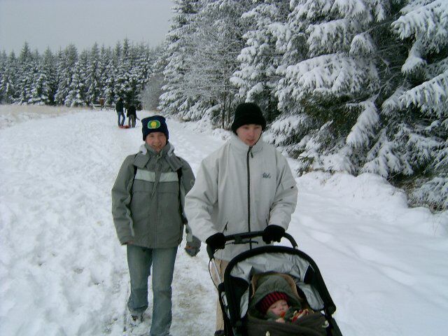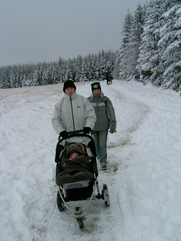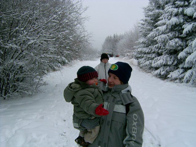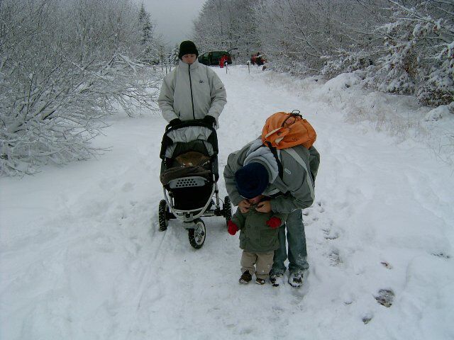 Je ziet dat je zelfs niet zo ver moet rijden om ook eens sneeuw te zien! En omdat we volop in de oefenfase omtrent "sneeuw" zitten (Han, je kan niet zeggen dat we hem niet proberen voor te bereiden he! ) konden we niet anders dan opnieuw onze warme kleren aantrekken en naar buiten gaan...