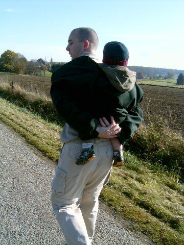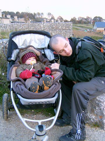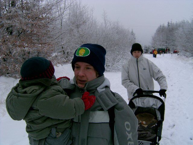 We blijven wandelen om de koude te verdrijven. Siebe vindt dat super. Al houden zijn kleine beentjes het nooit lang vol. Dan zijn papa's schouders zeker handig als "draagmiddel".