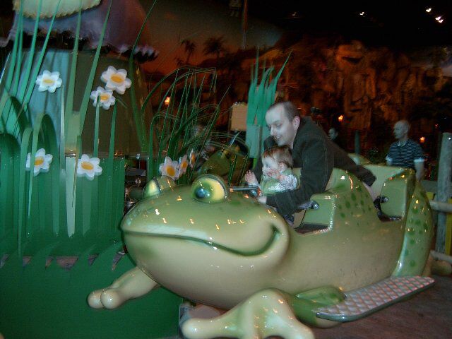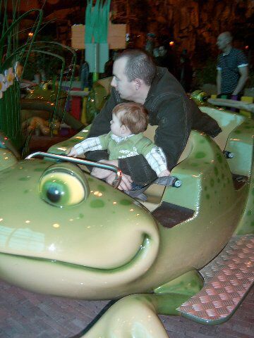 Hij interesseerde zich meer voor het water in de vijver, voor de steentjes langs de kant, voor de lichtjes bij al die attracties, ... Maar als we dan in zo een bewegende eend op het water of in een springende kikker gingen zitten... Neen, dat was maar niets!
