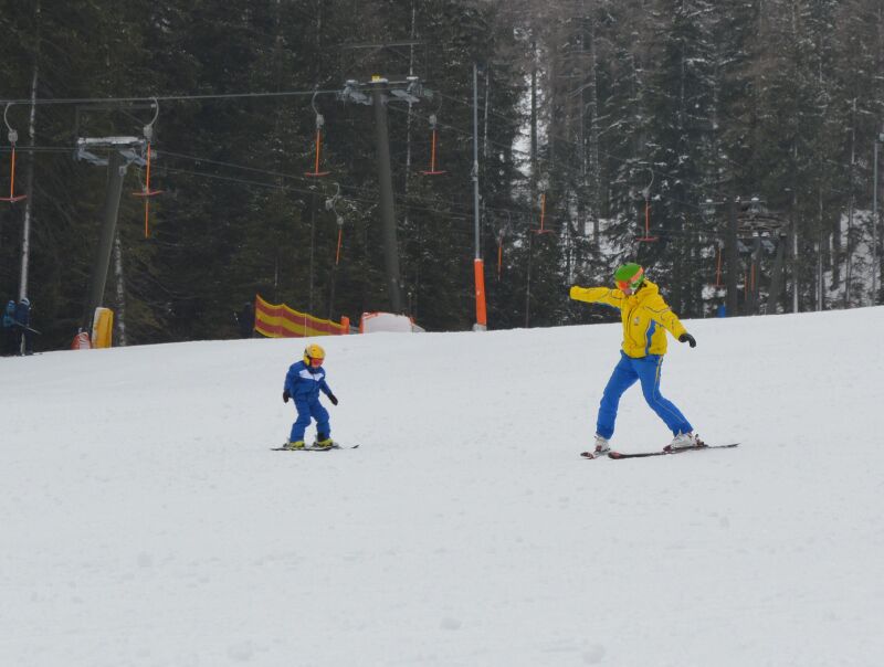 Skilessen met meester Tom en meester Dominiek, leuke pauzes tussendoor, mooie landschappen, een foto van haast iedereen (?) spannende momenten in de lift...