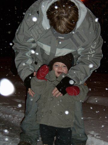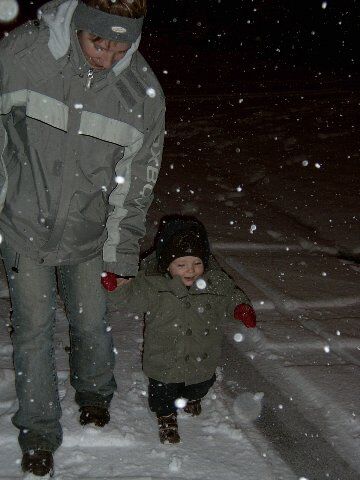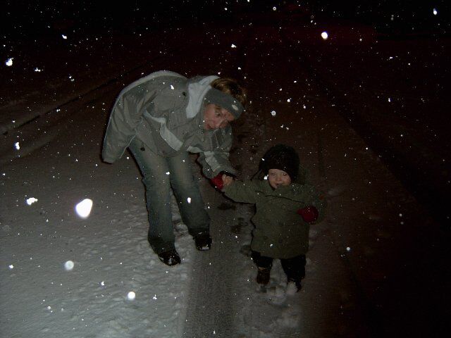 Best cool zo wandelen in de donker met verse sneeuw onder je voeten! En deze keer heeft ook Siebe ervan genoten. (Ha ja, want de buggy ging niet mee, ik mocht zelf stappen! ) Hij glunderde van begin tot einde, zelfs als er eens een sneeuwbal in zijn snoet belandde! Een flinke avondwandeling, in een knappe sfeer! De laatste foto is zeer speciaal: Siebes eigen voetafdruk in verse sneeuw!