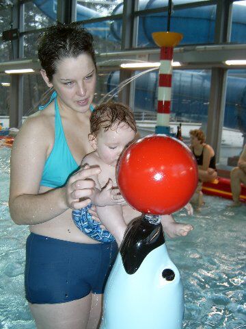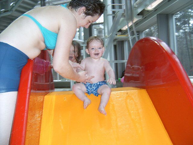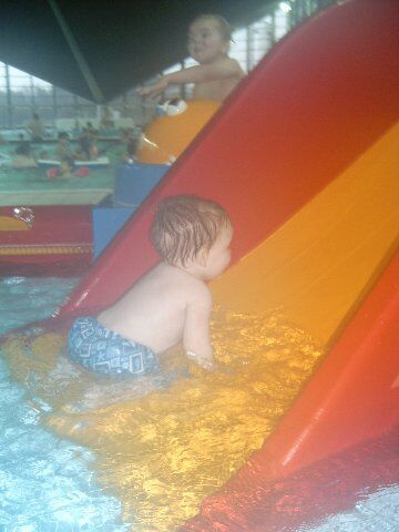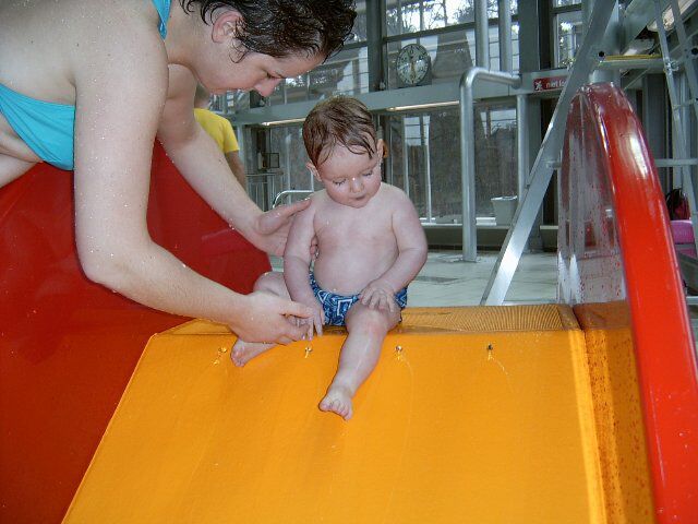 Voor wie het nog niet wist, het zwembad in Genk is na verchillende jaren weer geopend. En dat met een zeer leuk kinderbad! Siebe was er de hemel te rijk. Hij vond het water, zoals steeds, super. Hij ploeterde op en af, en de glijbaan had veel succes. Eén ding was duidelijk, van water heeft hij geen bang!