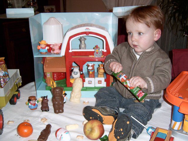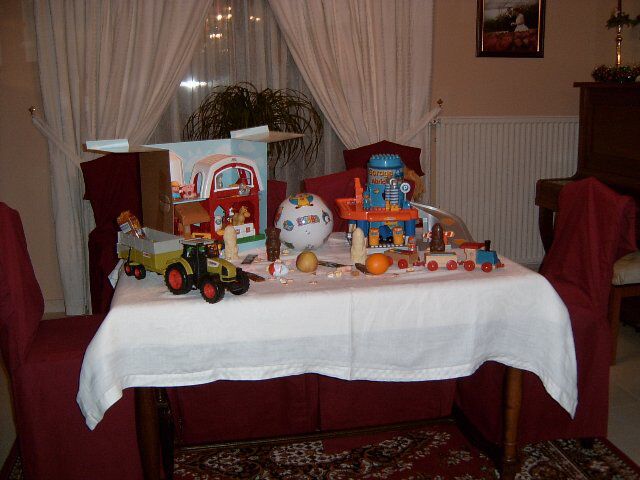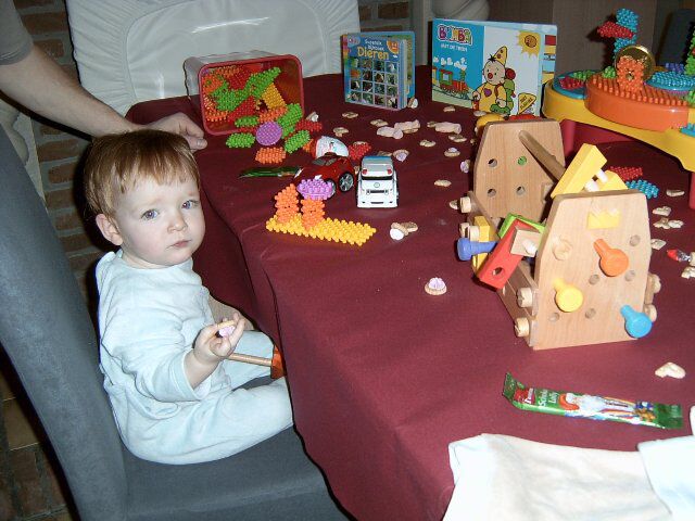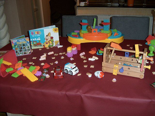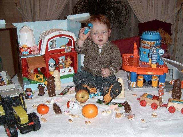 Hij was er wel wat vroeg bij, die Sint van Rommershoven, want dinsdag is Siebe daar al zijn cadeautjes mogen gaan bewonderen... Het is niet helemaal zijn allereerste Sint, want vorig jaar was Siebe ook al van de partij, maar eigenlijk is hij nu pas oud genoeg om zelf de pakjes in ontvangst te nemen. Er stond een mooi gedekte tafel op hem te wachten. De Sit vindt blijkbaar Siebe een zeer flke jongen, want buiten zijn bestelde boerderij met diertjes, lag er nog vanalles op de tafel. Gelukkig is er de afspraak dat niet al de speelgoedjes mee naar huis mogen, een deel blijft daar om ter plaatse te kunnen spelen. Anders was de auto helemaal volgeladen! Merci Sint!