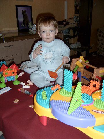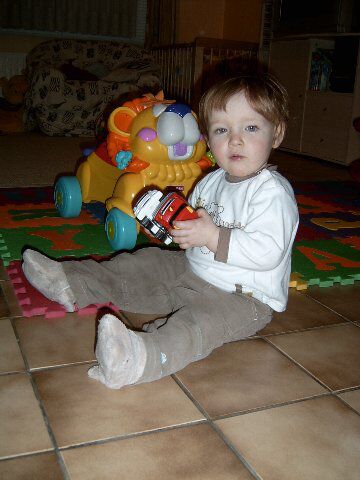 Op dit moment kan hij echter niet echt genieten van het speelgoed, want onze Siebe is ziek. Met eerst een nacht en dag van overgeven en koorts, nu een dag met koorts en diaree... Dus hij loopt er maar als een verloren schaapje bij... Doch ben ik er zeker van dat hij al die speelmomenten wel zal inhalen!
