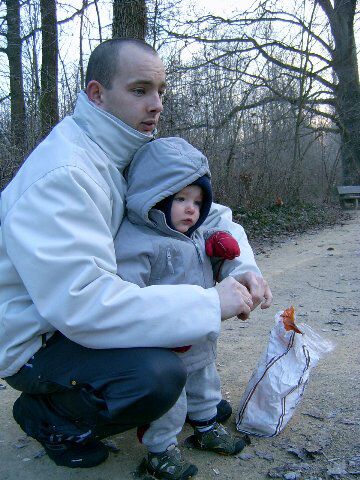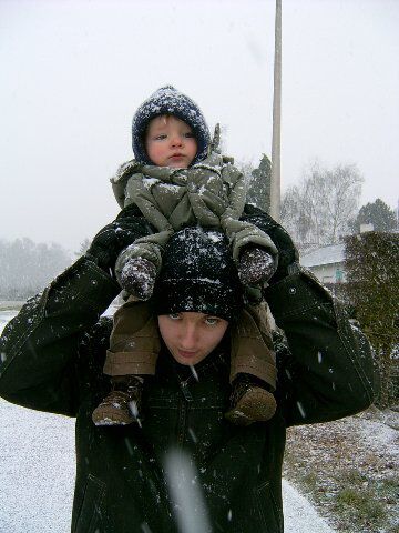 We blijven wandelen om de koude te verdrijven. Siebe vindt dat super. Al houden zijn kleine beentjes het nooit lang vol. Dan zijn papa's schouders zeker handig als "draagmiddel".