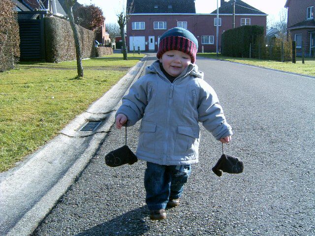 Wat doe je tijdens die koude winterdagen met zo een actieve snuit als Siebe? Dikke jas, sjaal, handschoenen, muts, kousenbroek, dikke broek, sokken, schoenen, .... allemaal aandoen en hup, de vrije natuur in!