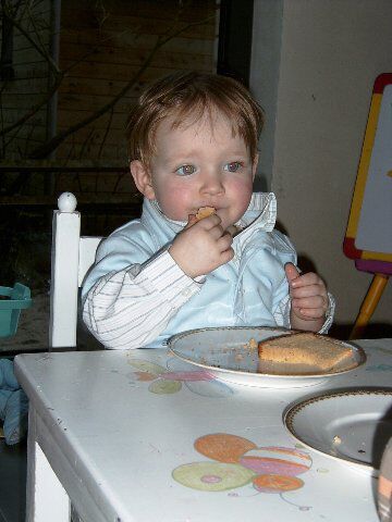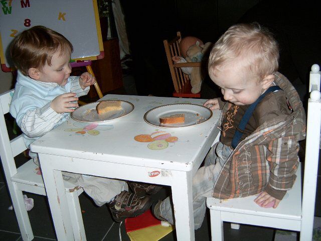 In februari verjaart mijn nichtje Lieze. Ik was gelukkig ook uitgenodigd op het feest! Al was ik weer eens ziek, die koorts blijft steeds komen he, ben ik toch even gaan cake eten. Het was een leuk zicht, ik en Linus tegenover elkaar aan tafel. Net 2 kleine meneertjes! Jammer dat we geen tijd genomen hebben om Lieze, de jarige, op de foto te zetten... Toch nog een gelukkige verjaardag gewenst!