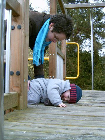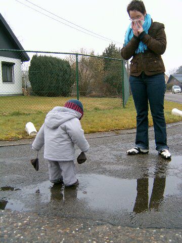 Toch was het ook een beetje een gekke dag. Want eerst beseffen we dat we Siebes zwemzak zijn vergeten (dus geen zwembroek, geen speeltjes, geen handdoek...) dan verliest Ine haar jas met autosleutels (Hoe geraken we terug in Hasselt?) Eindelijk in Hasselt toegekomen, besef ik dat ik de huissleutels heb laten liggen... Dus moeten we binnenbreken en Siebe binnensteken langs het raam... Tenslotte kijk ik naar de foto's op de kodak, en merk ik dat er slechts enkele goed genoeg zijn om te publiceren... Grrrr.