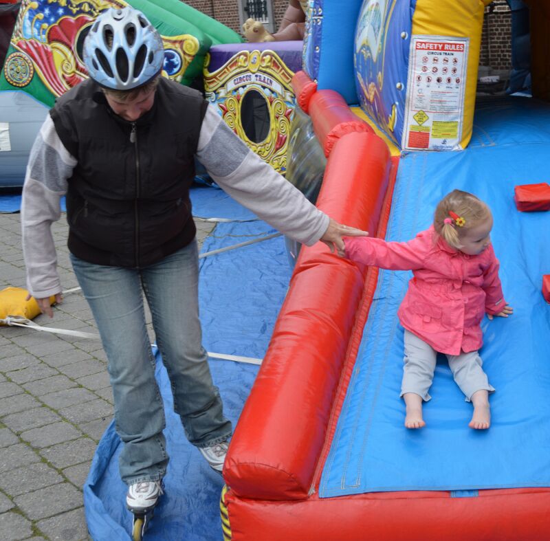 Zondag 26 mei, een verkeersvrijedag in Hasselt! Leuk om te fietsen (Siebe) skeeleren (mama en papa) en te genieten (Svanne), maar verder ook werd zijn fiets eens grondig door specialisten nagekeken, waren er opendeurdagen bij de politie, kon je er allerlei gekke fietsen testen, en stonden er een boel springkastelen... Leuk!