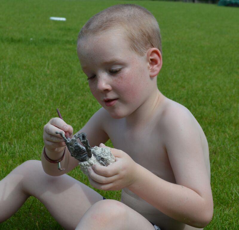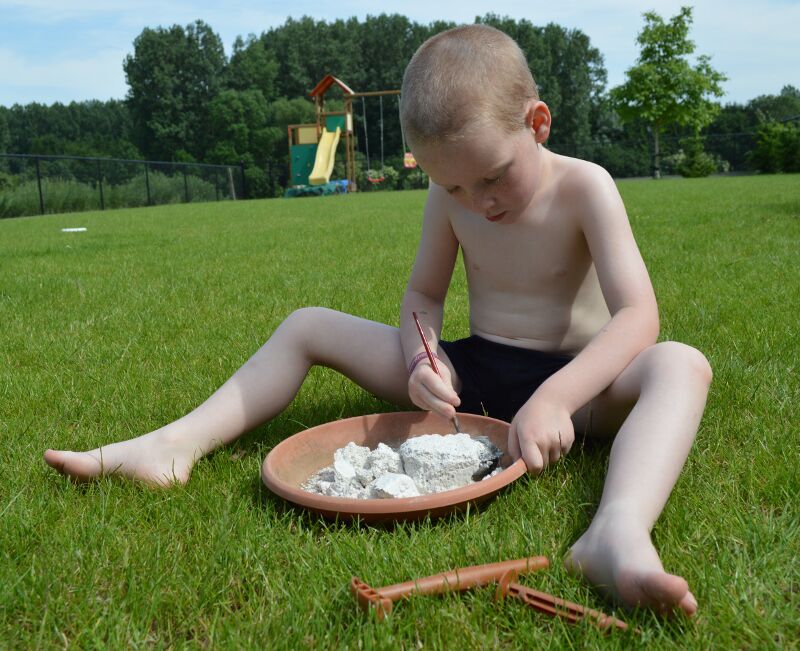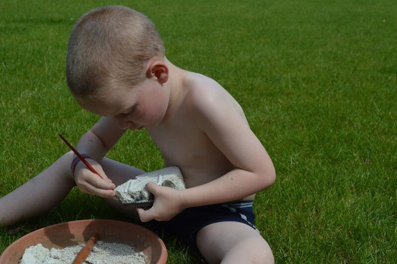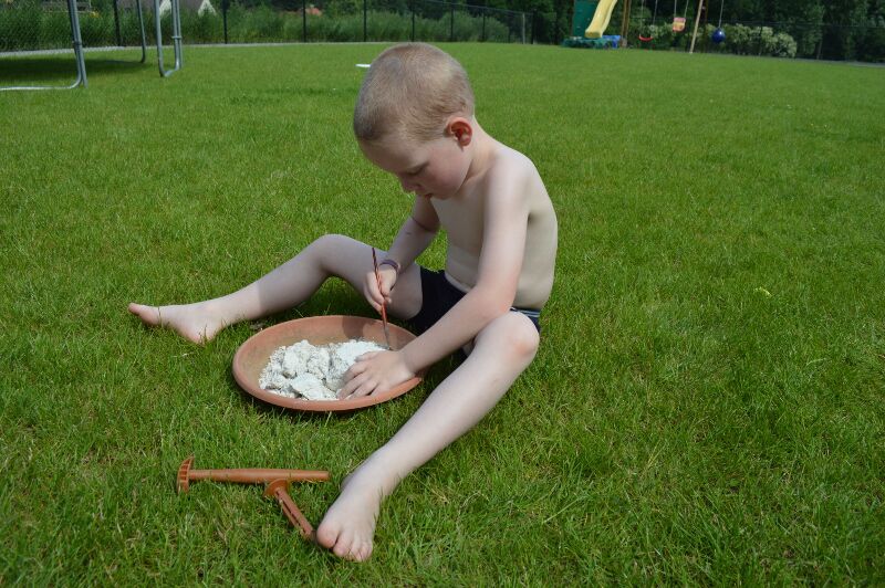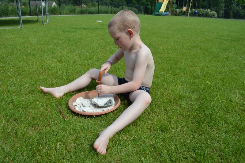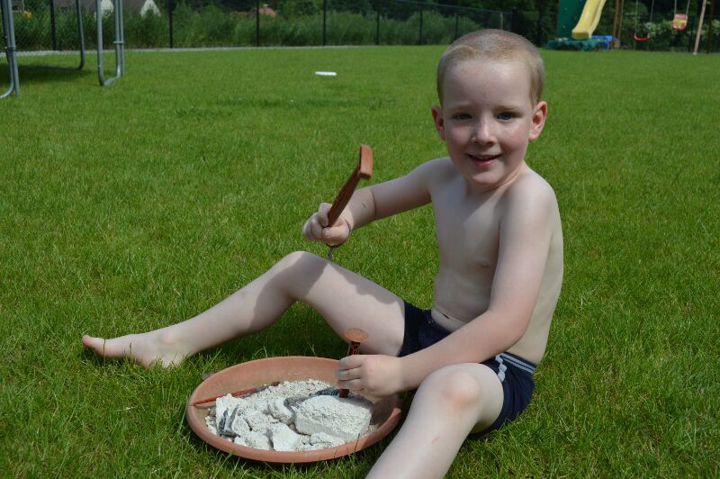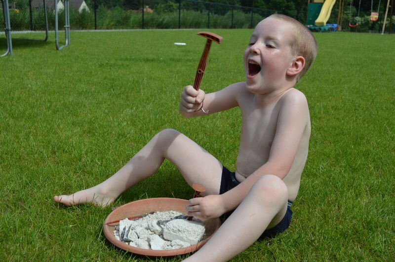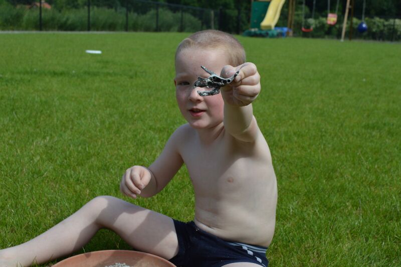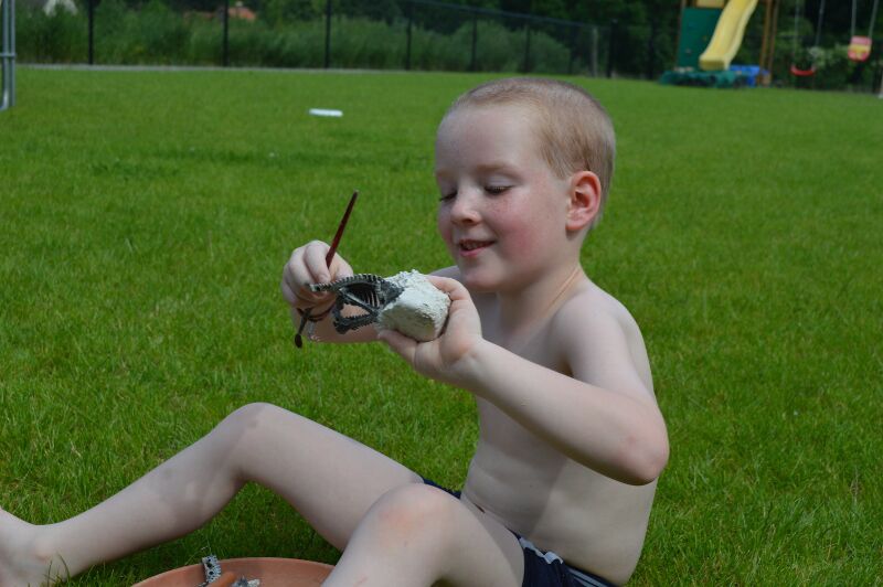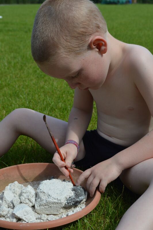 Siebes grote droom... Al spreekt hij tegenwoordig meer over voetballer , politieagent , dierenarts ... Deze foto's laten toch zien waarin onze paleontoloog in geïnteresseerd is... Hij was er zeker een uur mee zoet!