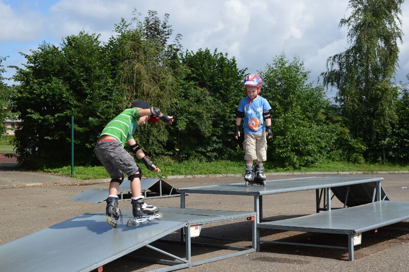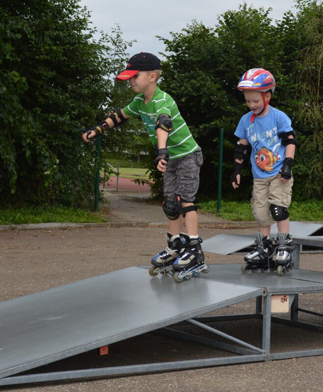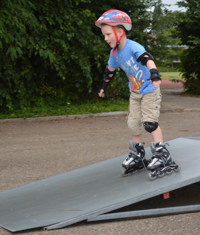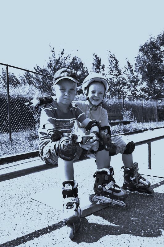 De vakantie biedt altijd meer mogelijkheden, en dus ook eens de kans om Kai te laten logeren. Vermits Svanne "een date" had in de babyschool, waren de jongens overdag alleen. En coole jongens, die willen stoere dingen: skaten op schansen! Leuk om te doen. Zelf wat kunnen skeeleren, boek gelezen in het zonnetje, foto's gemaakt... (Al lukte manueel deze keer totaal niet, pleit ik schuldig Dus heel wat overbelichte zaken gecamoufleerd door grijswaarden ... )