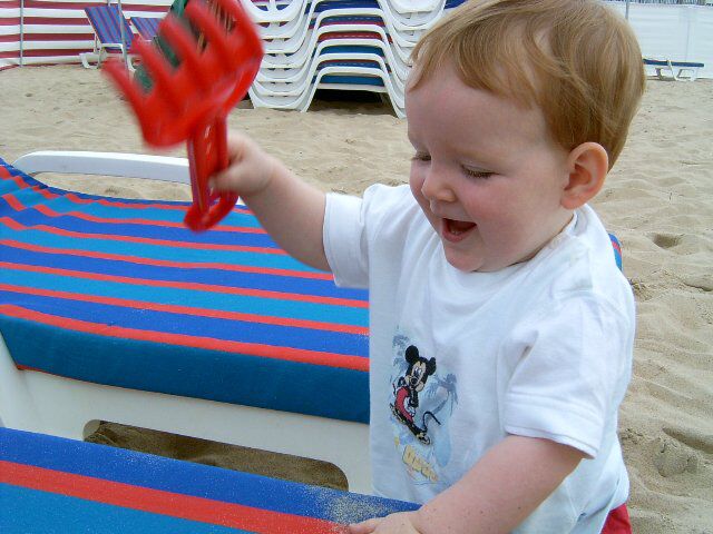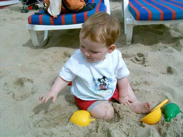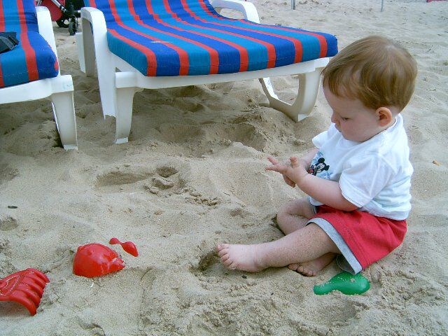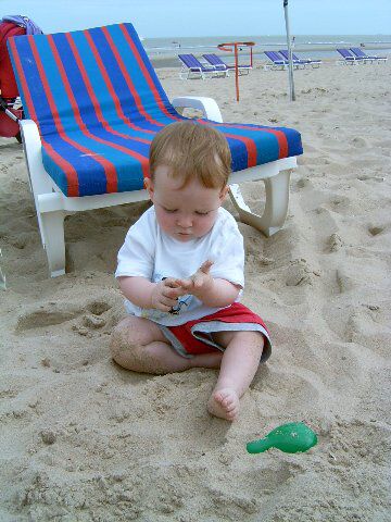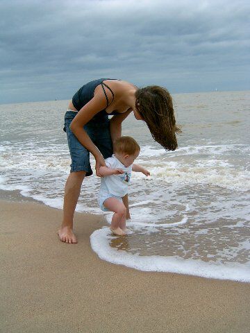 Fijn, al dat water, de golven aan mijn voetjes, het zand tussen de tenen en in de handjes. Dat zand dat weer verdwijnt als je je handen opendoet... Zandkastelen bouwen (voor Siebe afbreken), wandelen lngs de dijk, shoppen in Oostende,... Gewoon geen tijd om te slapen overdag! En toch 's morgens wakker als een vis, klaar voor een nieuwe dag!