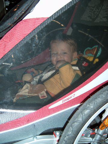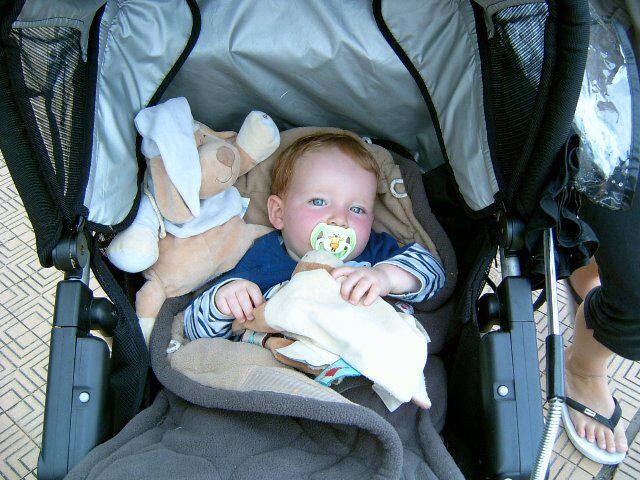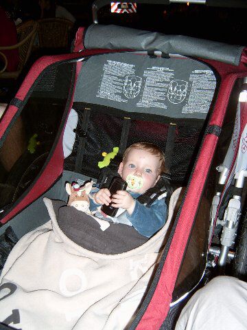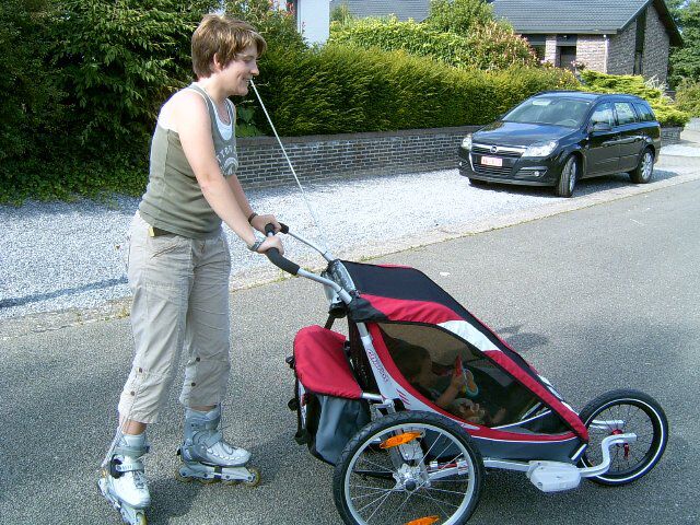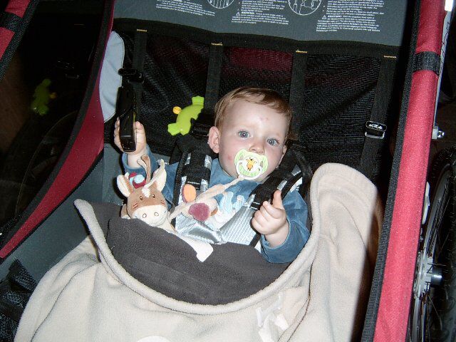 De bedoeling is om hem mee te nemen fietsen, skeeleren, wandelen... Om het even waar of wat, hij kan nu overal met een rust hart mee. De eerste testrit was alvast een succes! Uitermate fier, trotseerden Ine en ik de wegen te Kuringen, zelfs bergop en bergaf! Iedereen is dus gewaarschuwd, Siebes is on the road!