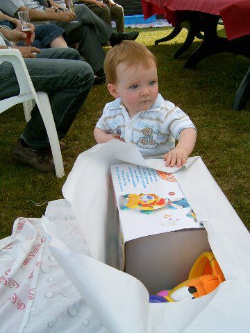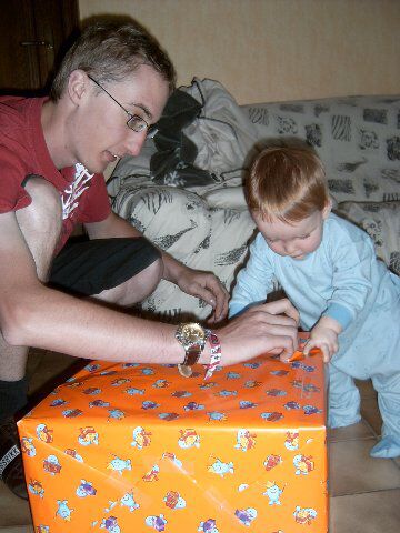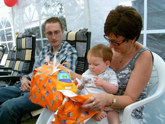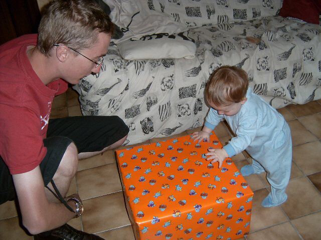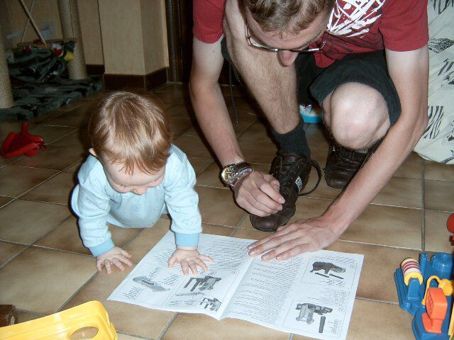 Wie de site regelmatig bezoekt, kon mee aftellen tot zaterdag 16 augustus: Siebes eerste verjaardag! Voor Siebe zelf begon het feest al redelijk vroeg, met het openen van zijn eerste echte cadeau!Waarom de mensen die pakjes steeds zo deftig inpakken, begrijpt hij nog steeds niet! En wat is er dan leuker, dan samen met zijn peter, de plannen te bestuderen om alles netjes in elkaar te steken? Maar goed dat Siebe toezicht hield, want iets in elkaar steken met plannetjes bleek toch niet altijd even simpel...