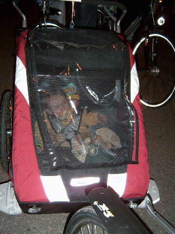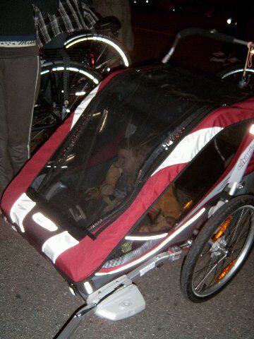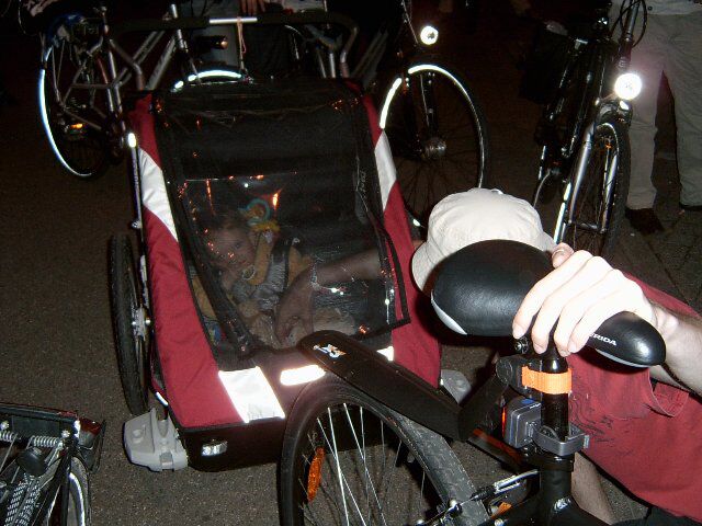 Enkele benoemenswaardige cijfers: We vertrekken dan rond 20u en zijn terug omstreeks 23u. Slapen? Neen, heel even een dutje, maar verder doet hij geen oog dicht en is uitermate goed gezind door alle lichtjes en actie in die latere uurtjes. We houden dit dan zelfs 21 kilometer lang vol! Als je de fietstocht van thuis uit en terug meerekent, doen we er zelfs bijna 30! Knap werk he!