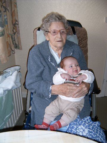 Morgen is Siebes overgrootmoeder jarig! Ons Bonneke wordt al 96 jaar! Daar mag je best fier op zijn! Siebe wenst haar alvast van harte proficiat. We komen na onze korte vakantie eens langs! Geef er een lap op, Bonneke! Met een knipoog van Siebe. We steken er een foto bij. Maar inderdaad, het is er geen recente. Iets wat we dus dringend eens moeten doen, he Bonneke, nieuwe foto's maken! Siebe was hier 4 maanden.