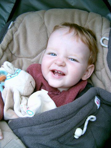 Daar de school terug begonnen is heeft mijn mama weinig tijd... Ze laat wel fier weten dat ik ijverig 'neen' kan schudden, eerst erg grappig, maar daarna snel erg vervelend... Dat ik al alleen blijf rechtstaan zonder steun, als ik er zelf maar niet te veel op let, want anders ga ik snel weer zitten (Oeps, wat doe ik nu??? ) Ik de laatste dagen nogal actief blijf 's nachts en langdurige babbelsessies houd in mijn bed (zodat mama dan weer minder slaapt... ) Ik dringend eens naar de kapper moet, want ik begin overal krullen te krijgen! (Zie foto)