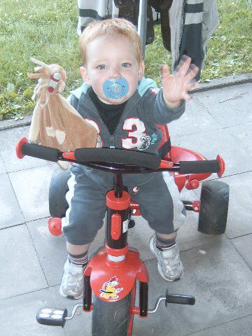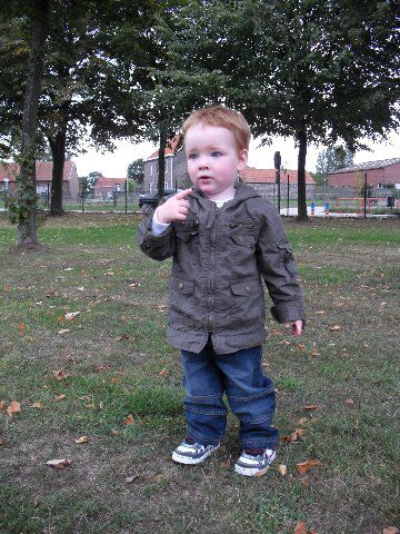 Om er maar voor te zorgen dat ietdereen weer gerust is, laat ik fier weten dat onze kleine heer weer volledig genezen verklaard is. Nog enkele plekken op zijn snoet en arm getuigen van de waterpokken. Maar hier is hij totaal niet ziek van geweest. En zijn arm doet het weer helemaal. Hij wist dat hij maandagmiddag naar de dokter moest en ging dan ook gewoon weer zijn arm en hand gebruiken...