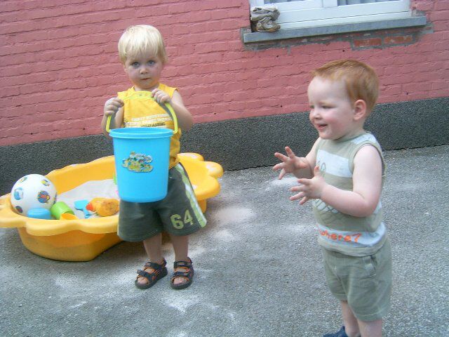 Op van die mooie en warme dagen, voelt Siebe zich in zijn nopjes, want dan staat er gegarandeerd waterpret op het programma! Hij is dol op water, je moet hem echt niet uitleggen dat het lekker fris is, dat je dat kan gieten of zelfs gooien op iemand in de buurt! Vaak is hij al goed blauw eer hij te overtuigen is om eruit te komen. Tegenwoordig is een wasmand met water en zijn speelgoed het leukste tijdverdrijf!