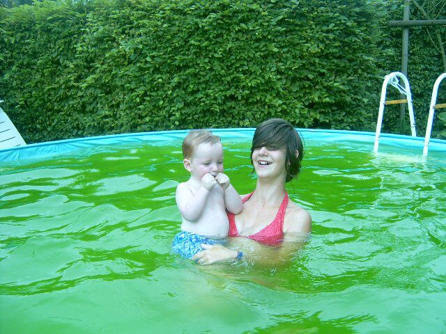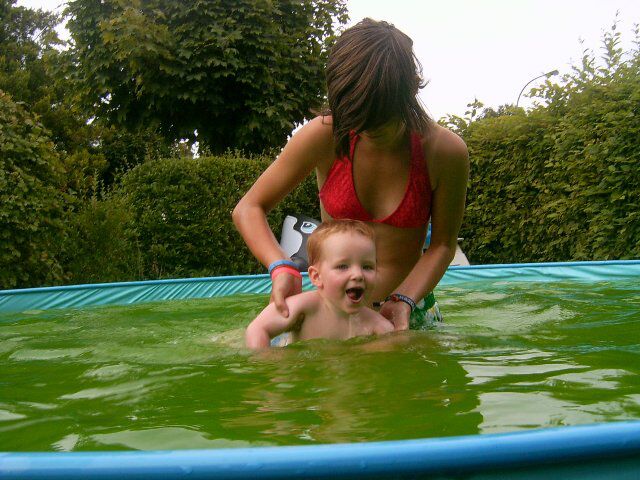 Na eindelijk wat te herstellen van die laatste zware schooldagen, moest Siebe nu eens dringend naar zijn huis gaan kijken. De kelder is al klaar, de welfels liggen er al op, het dek is al gegoten, ze zijn zelfs al aan de eerste gevelstenen begonnen. Hoog tijd voor een inspectie dus! Dus planden we een dagje Kortessem, met zwemmen (om van dat weer te kunnen afkoelen) buiten spelen, naar de ijsbar wandelen en naar de bouw gaan kijken.