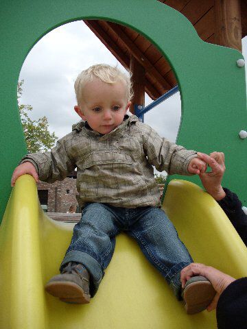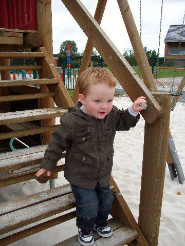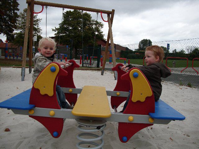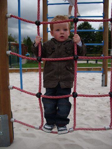 En als het dan wel mooi weer is, maar net te veel wind om te ploeteren in water, moeten we hem afleiden met andere leuke dingen. Dus gaan we regelmatig eens op ronde met zijn fiets tot aan de speeltuinen in de buurt. Ook dit vind hij best wel ok. Hij kan nu al flink alleen op de schommel zitten, de speeltuin verkennen, ... En van speeltuin tot speeltuin fietsen is ook leuk. Zeker als je onderweg stenen kan verzamelen...