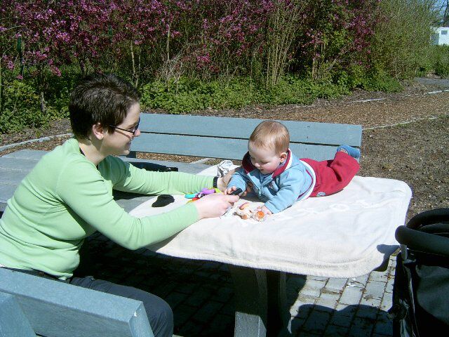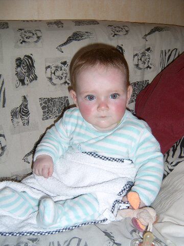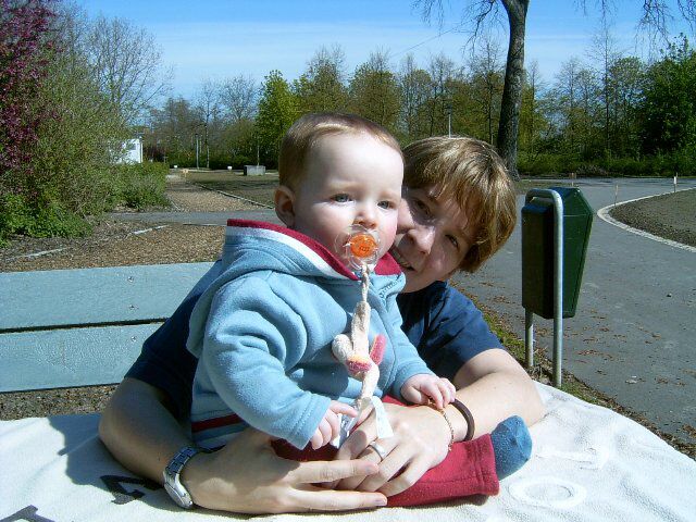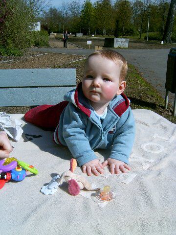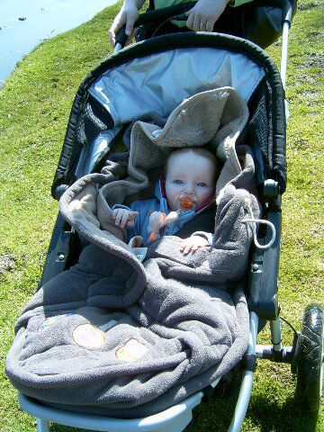 We hadden het echt niet in de gaten, maar achteraf was het snel duidelijk... De zon heeft Siebes snoetje rood gekleurd. De foto's zijn misschien niet heel duidelijk, maar als je hem nu zo voor je ziet, is het niet mis, die BLONDE haren , blauwe ogen met een rode achtergrond als huidje. Alleen waar zijn tut zat, bleef hij wit... Volgende keer maar zonnecrème meenemen...
