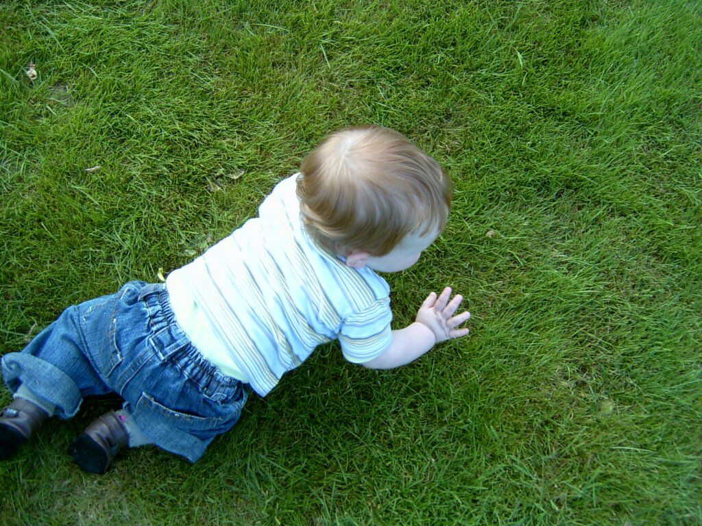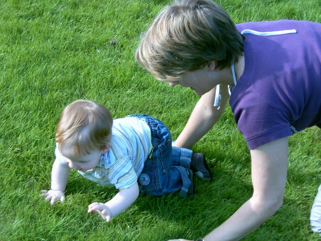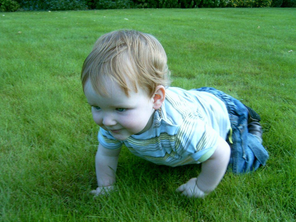 Gelukkig krijgen we de laatste dagen nog eens mooi weer. Dus weer goede momenten om Siebe buiten te zetten en wat foto's te maken. Ik laat jullie met plezier mee genieten van zijn kruip kunsten. Jammer dat je op een foto niet kan zien hoe snel de kleine kruiper is...