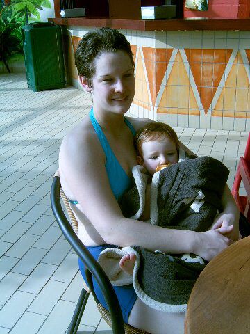 Toch was het ook een beetje een gekke dag. Want eerst beseffen we dat we Siebes zwemzak zijn vergeten (dus geen zwembroek, geen speeltjes, geen handdoek...) dan verliest Ine haar jas met autosleutels (Hoe geraken we terug in Hasselt?) Eindelijk in Hasselt toegekomen, besef ik dat ik de huissleutels heb laten liggen... Dus moeten we binnenbreken en Siebe binnensteken langs het raam... Tenslotte kijk ik naar de foto's op de kodak, en merk ik dat er slechts enkele goed genoeg zijn om te publiceren... Grrrr.