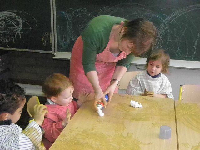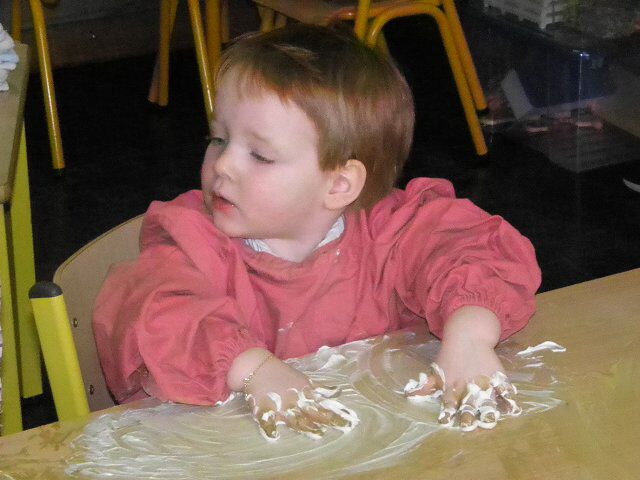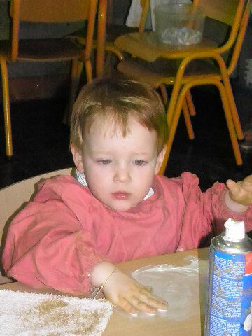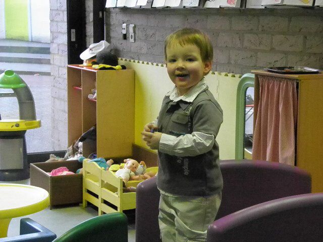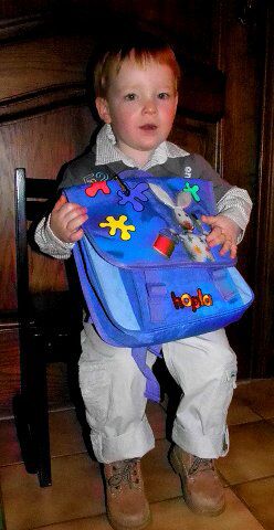 Ja mensen, je leest het goed. Die kleine neus, die daar nog niet zo lang geleden geboren werd, verjaarde en leerde stappen, weer verjaarde en leerde potjes plassen, is nu een echte peuter. Hij stapte vandaag zo fier als een gieter,best neiuwsgierig naar wat er stond te gebeuren, zijn schoolpoort binnen. Zoveel kinderen om hem heen, een grote drukte, maar het schrikte hem totaal niet af. Eerst even alleen de klas verkennen. Zoveel ruimte om in de spelen! Dan kwamen er andere kinderen in de klas (in Siebe zijn klas nog wel!) De juf zong een liedje, las een verhaaltje voor, vertelde over het weer... terwijl Siebe de klas verder verkende. Hij zat niet tussen de kinderen in de kring. Neen, dat was niet spannend genoeg. Maar die verfhoek en de auto's, de glijbaan en de fietsjes, daar was het hem om te doen! Tot hij naar de les 'schrijfdans' mocht. Daar leerden ze met krijt op een bord schrijven! En mochten ze mee dansen en springen. (Uiteraard naar Siebes zin!) En tenslotte mochten ze er me klei de banken besmeuren! Geef toe, echt spek naar Siebes bek. Hij help heel flink de tafels wassen met zeep en washandjes! Zelfs thuis heeft hij dat nooit mogen doen! Een grote stap in onze kleine neus zijn leven! Niet te geloven hoe snel het gaat! Volgende week gaat hij woensdag nog een keertje. Dan zelfs zonder mama en papa erbij! (Dus vogelvrij!) En na de vakantie, dan is het echt aan hem. Vanaf 22 februari, vertelt hij overal erg fier, gaat onze kleine, grote peuter, naar zijn klas, dag na dag! (snik)