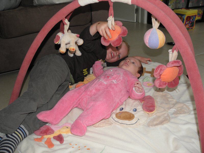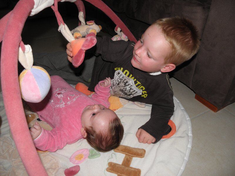 Eindelijk gaat er voor Siebe een wereld open: kleine zus begint aan haar eerste speelmomenten. Samen op de mat, hij die tegen haar babbelt, dingen laat horen en zien... Geweldig!