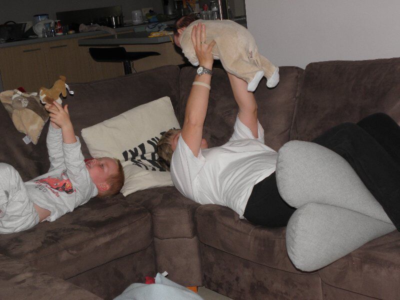 Wat een leuk moment! Mama die oefeingen doet met Svanne en Siebe die ze nadoet met zijn kleine hond! Prachtig om zien! Armoefeingen, buikspieroefningen, ... En svanne? Die heeft plezier voor 2! En daarna een verdiende rust!