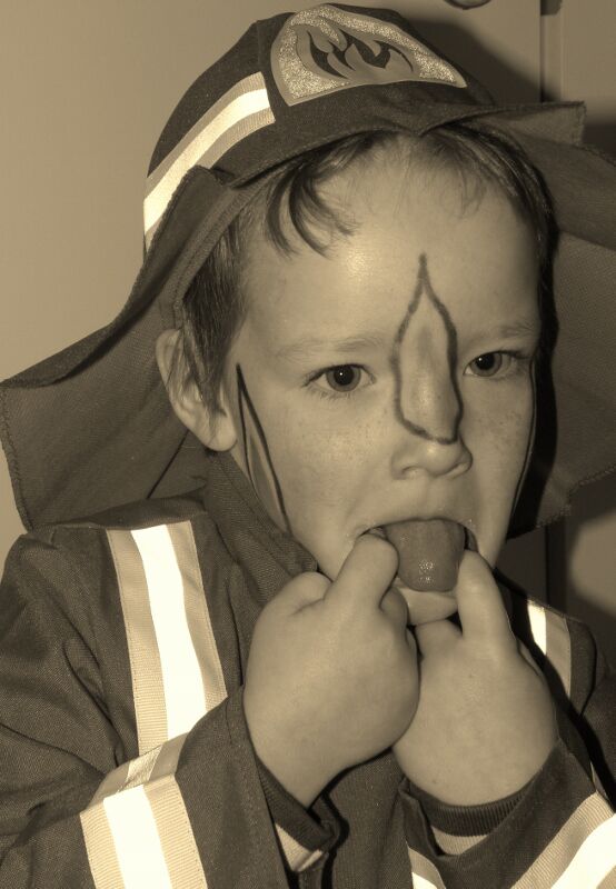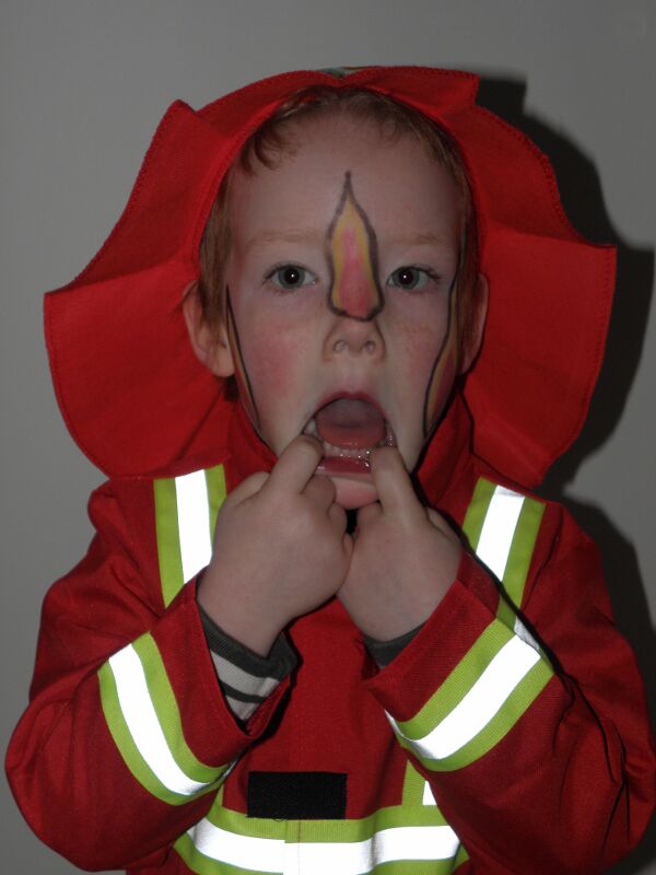 Siebe had vandaag Carnaval op school. Liefst geen typische pakjes van mega toby of legermannen, maar dan toch iets leuk vinden... Niet simpel. Uiteindelijk kon hij kiezen tussen een piratenpak en een brandweerpak... Hij staat er wel mee! En dan nog overtuigen om hem te schminken... Maar met de nodige uitleg lukte dat ook! Hij was zelfs laaiend enthousiast! En als hij dan snuiten mag maken voor de camera, zijn die foto's zo klaar!