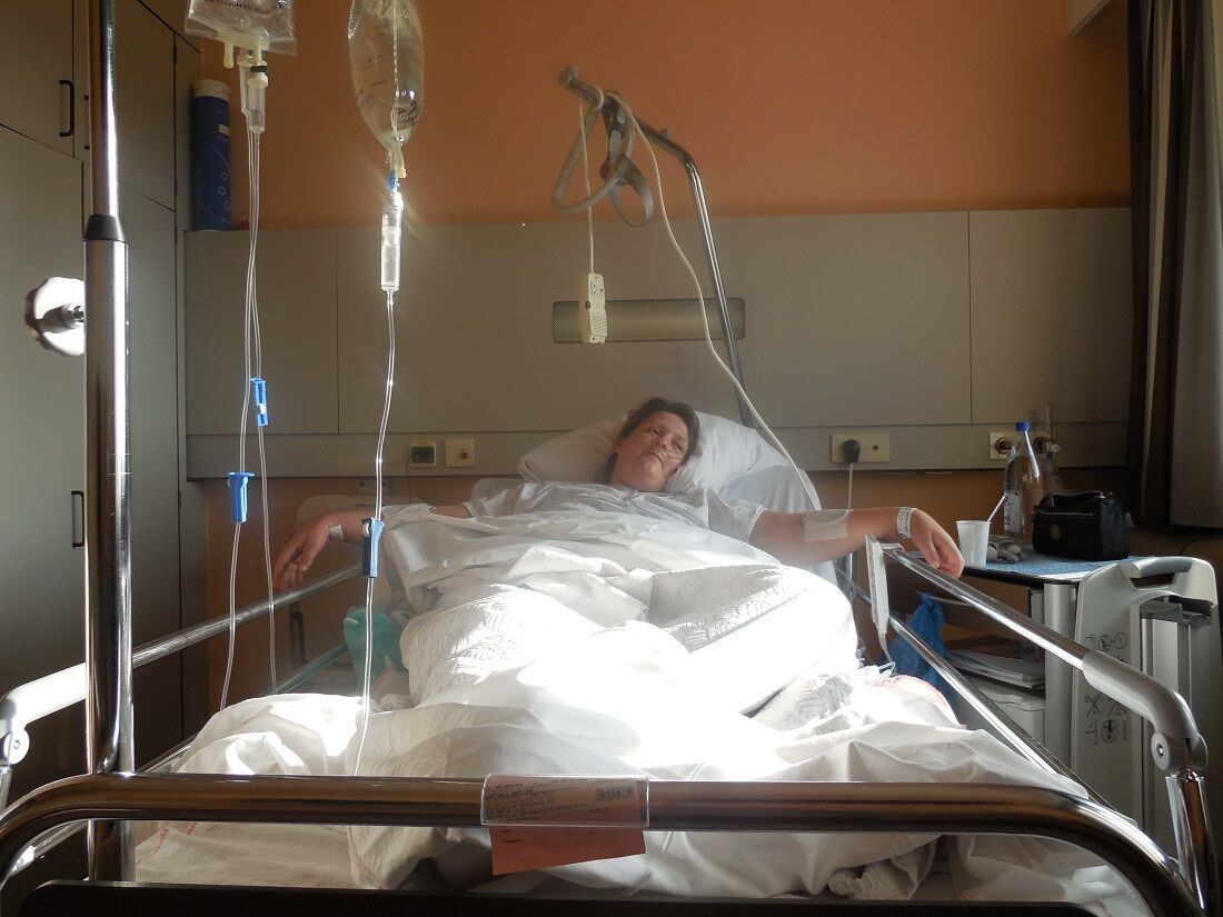 Wakker geworden op de IZ, dierct de verpleegkundigen rond mij:"Mevrouw hoe voelt ge u ?" Ik:" Moe, pijn en honger!" Niet normaal hoeveel honger ik had!