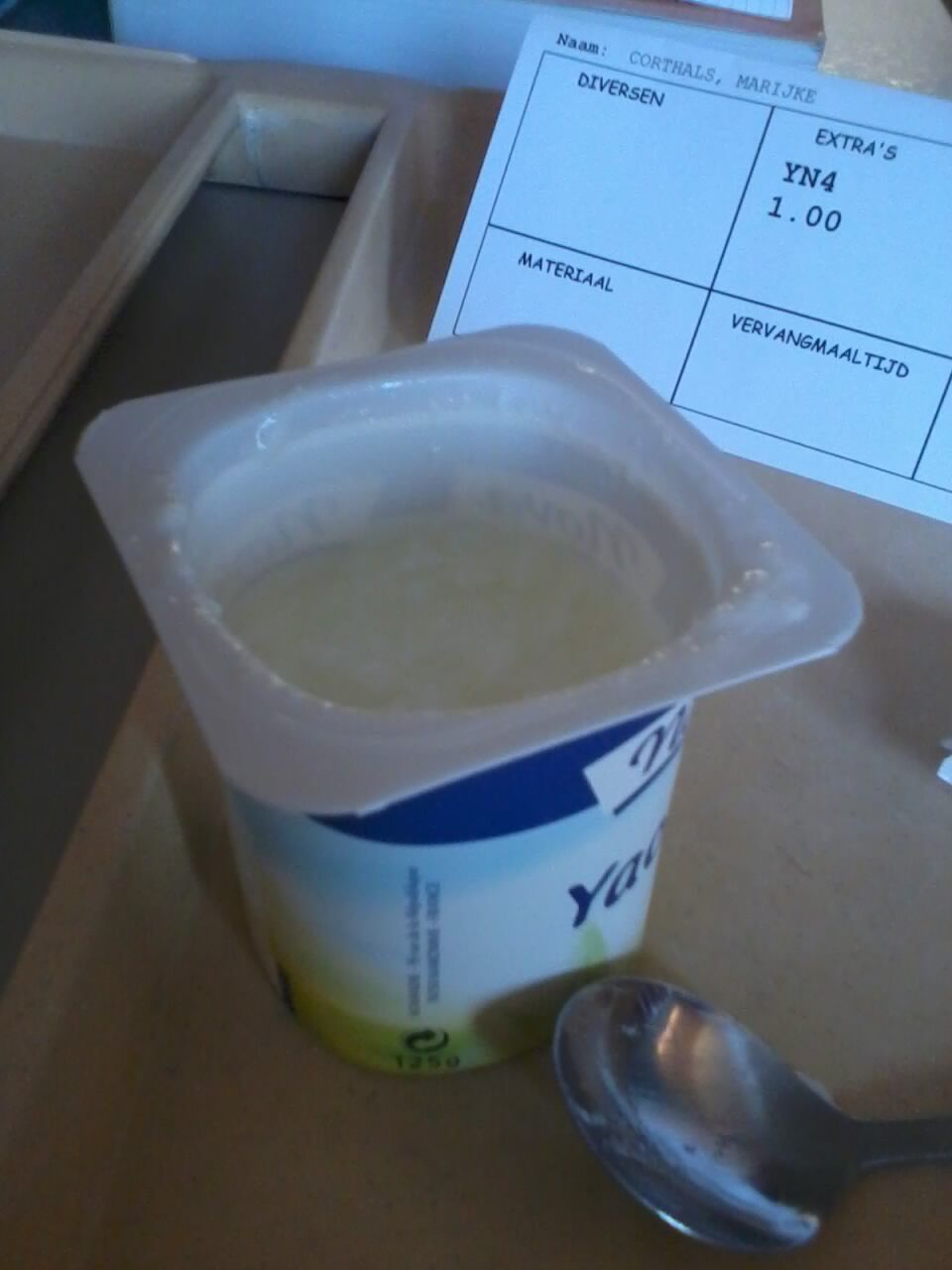 Dan zit je daar allemaal samen aan tafel, iedereen geniet van zijn avondmaal en ik zit daar, met mijn yoghurtje dat ik zelfs nog niet helemaal leeg krijg.