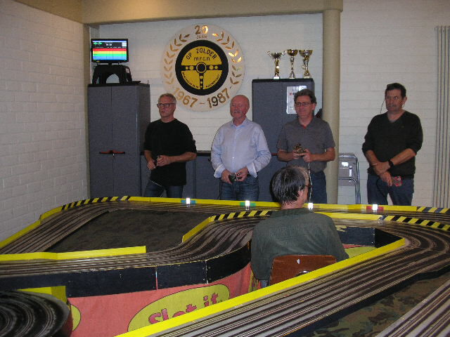 Bij de start van de 4x6minuten race na Peter meteen de leiding maar een sortie verplichte hem een pitstop te maken, meteen had Bert de weg vrij naar de overwinning.