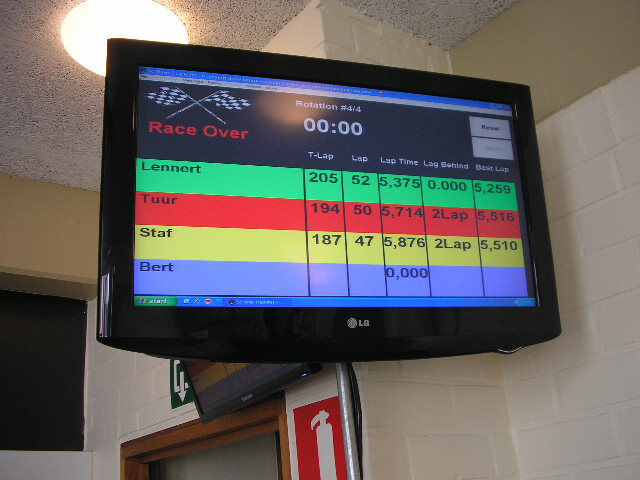 Spannende KWALIFICATIERACE 4x 2 minuten. Bert won deze met 1 rondje voor Laurent en 2 rondjes op Peter.