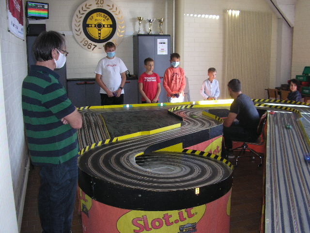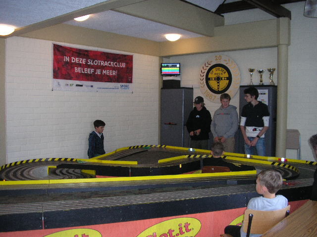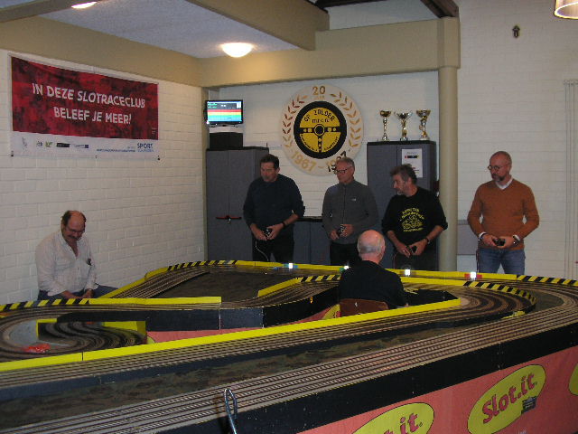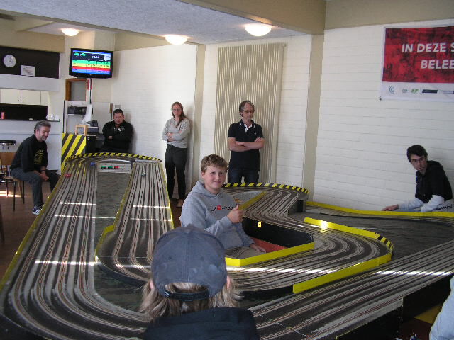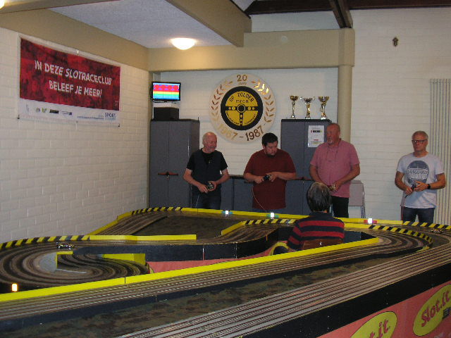 Spannende KWALIFICATIERACE 4x 2 minuten. Bert won deze met 1 rondje voor Laurent en 2 rondjes op Peter.