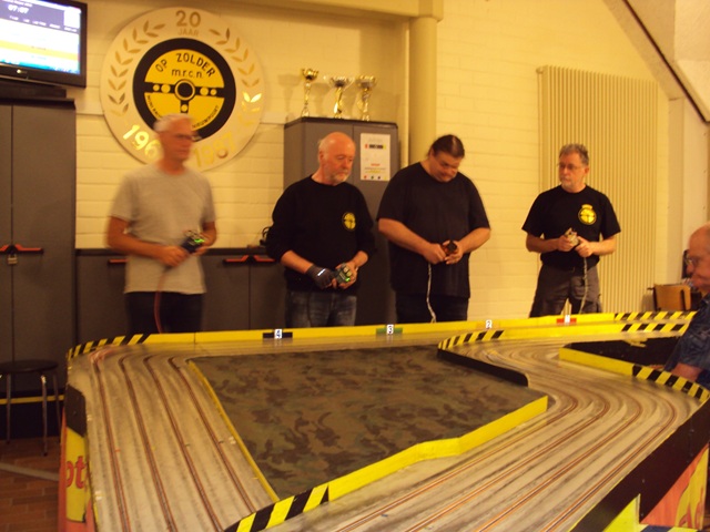 PETER, dit jaar nog ongeslagen, bewees zijn reputatie met direct de leiding op te eisen maar Laurent liet dit zo maar niet gebeuren. In de tweede heat snoepte hij al een rondje af van de voorsprong van Peter. Na de derde heat stonden beiden in de zelfde ronde met een kleine voorsprong voor Laurent. Dit kon Peter niet toestaan en begon een ferme sprint, ook wat geholpen door een race feit won PETER met een rondje voorsprong. Ook in de strijd voor de beste ronde bleken beide kemphanen aan elkaar gewaagd, slechts 1/10 sec was het verschil. Voor de laagste trede van het podium was er eveneens een felle strijd, wisselwaar een eindje achter de raceleaders. Bij de start nam Urbain het voortouw maar reeds in de tweede heat moest hij Daniel voorlaten. Stefaan reed de race van zijn leven en nam Urbain in de laatste heat te grazen. Mario kwam als laatste over de meet, beetje bij beetje verbeterd hij zijn prestaties en naderd hij het peleton.