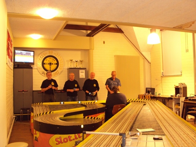 Het werd terug een tweestrijd LAURENT, Peter, ditmaal in het voordeel van Laurent. Bij de start nam Laurent resoluut de leiding, Peter kon dit niet laten gebeuren en nam in de tweede heat de leiding over. In de derde heat veroverde Laurent terug de koppositie met een 100 ronden heat op de blauw baan. Met een ultieme sprint kwam Peter terug in de slipstream van Laurent maar sneuvelde tenslotte op een kwartje ronde. SPANNEND ZEG! Troost voor Peter, hij reed de snelste rondetijd in 4 sec. 538/000.