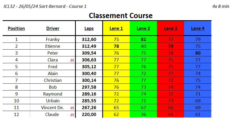De snelste ronde werd gereden door LAURENT, 4 sec 568 duizensten.