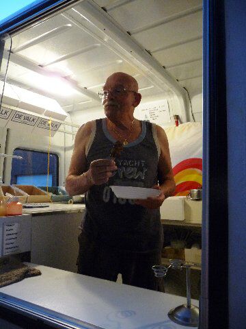 Dus ieder had zijn drinken meegebracht Rond 21u komt de cremekar van Baeten. Jos mocht een stukje meeeten en wij hadden een lekker dessert. Tot laat hebben we op 't straat gezeten