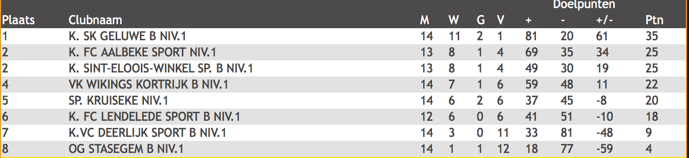 Ik denk dat we met trots mogen zeggen dat we een geslaagde heenronde achter de rug hebben. Bij momenten hebben wij mooi en goed voetbal gebracht, andere momenten liep het iets minder... Vooral een deugddoende en verdiende overwinning tegen Geluwe als topprestatie! We zijn de enige ploeg die hen geklopt hebben ! We eindigen op een mooie 5e plaats met 20 punten, knap !