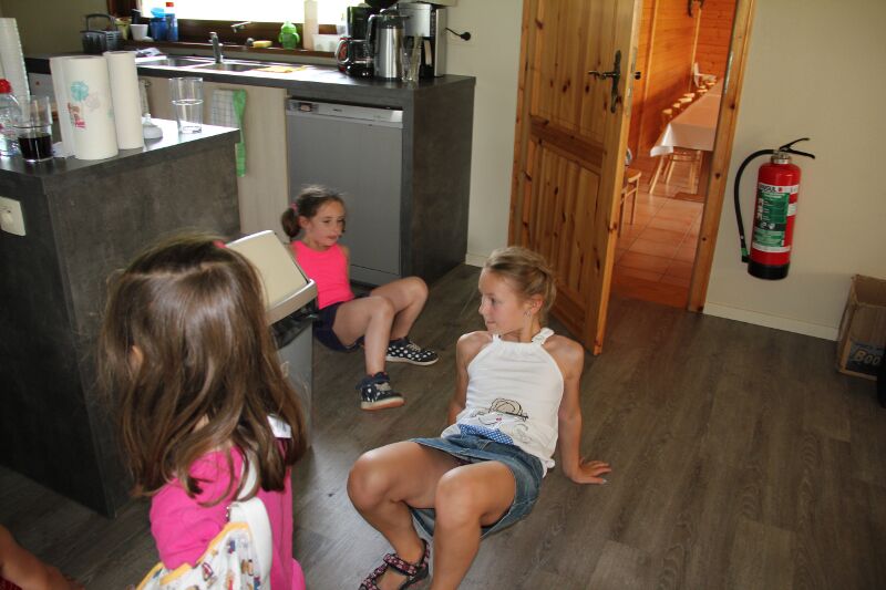 Aangekomen in huisje kregen we lekkere macaroni voorgeschoteld. Nu allemaal vlug in bad en dan richting dromenland.