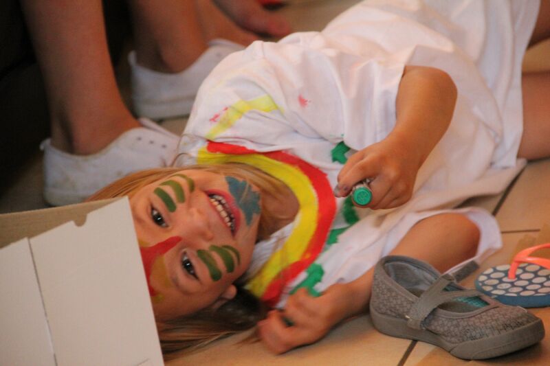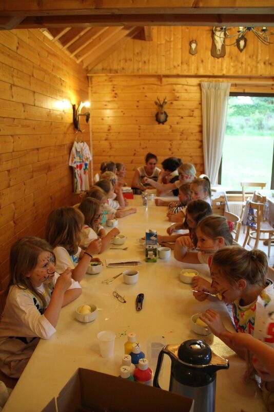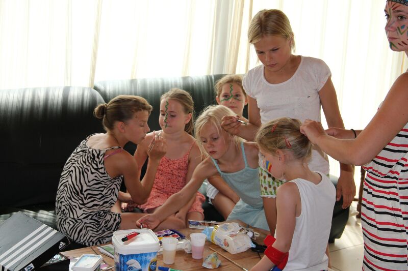 Doordat de indianen wat vermoeid waren vn de rustdag en turnvoormiddag hebben we een uurtje platte rust voorgeschreven. Daarna kon iedereen verder werken aan zijn ketting en indianen kleed. Daarna werkten ze per tipitent aan hun totempaal. En natuurlijk hoorde daarbij ook hunzelf of elkaar schminken.