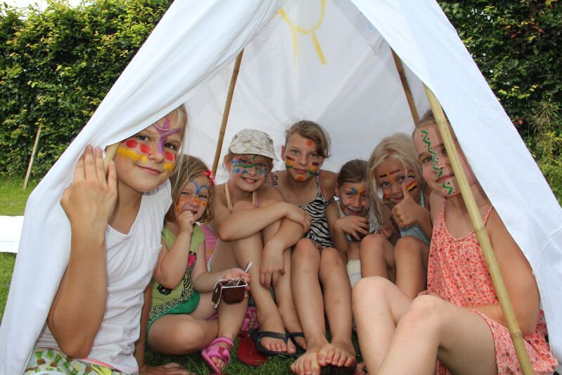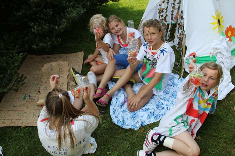 materiaal om hun tipitent op te maken en met mooie resultaten Hun lekkere pudding als 4-uurtje namen ze dan
