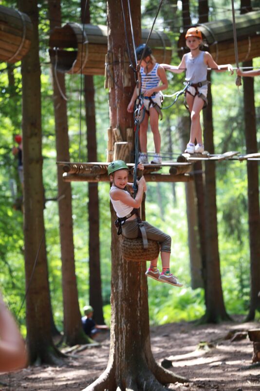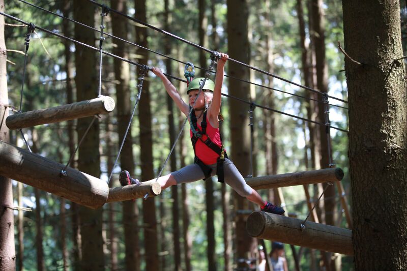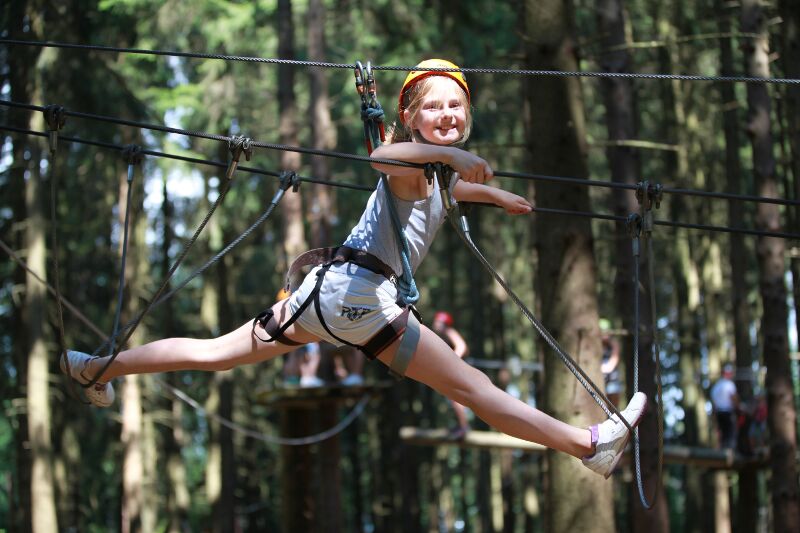 De ganse dag op en af palen - kabels - touwen, wiebelende balken - hangende tonnen - en allerhande opstakels.