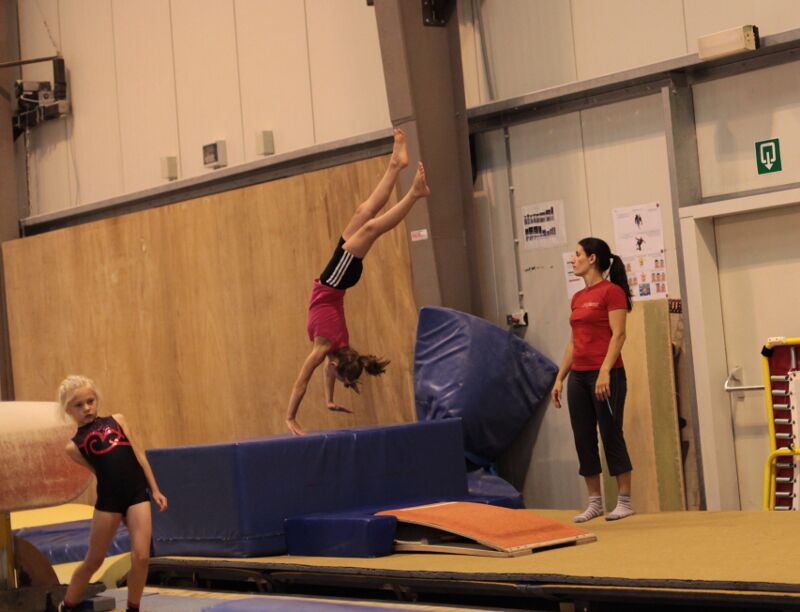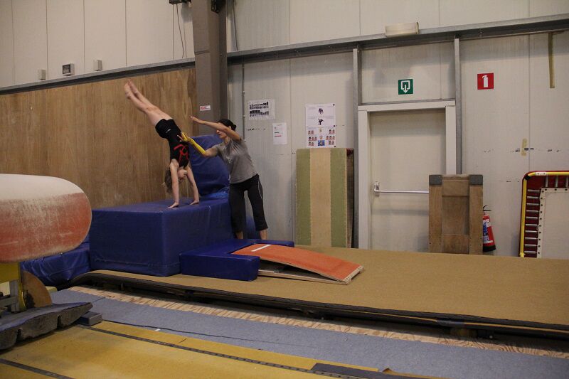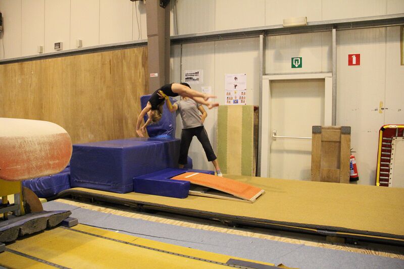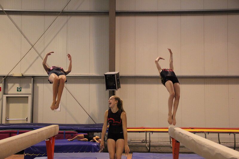 gekregen. Verder geoefend op overslag salto en de verbinding flikflak.