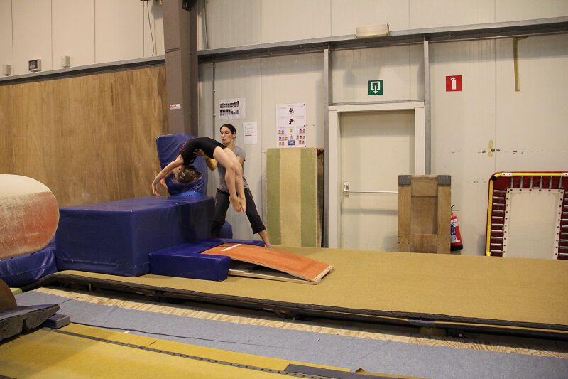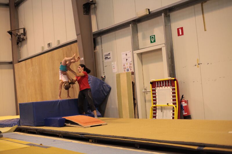 bij juf Stefanie deed Hélène rondat salto alleen op de fasttrac