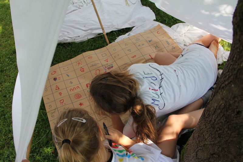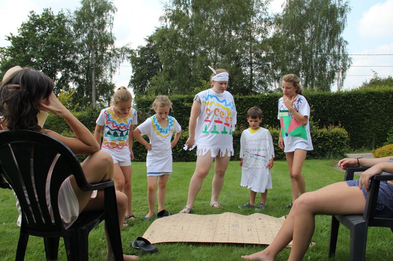 Dan begon de spelnamiddag, de indianen moesten door middel van een geheimschrift een code vinden om te weten waar de schat lag.